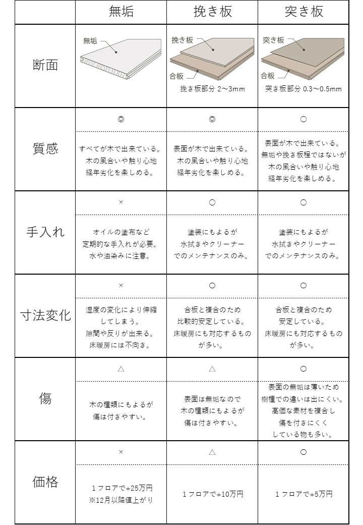 簡単な比較表がこちら(朝日ウッドテックさんより引用)