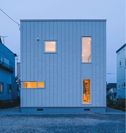外壁は幅広のガルバリウム、立平葺きが標準仕様。
