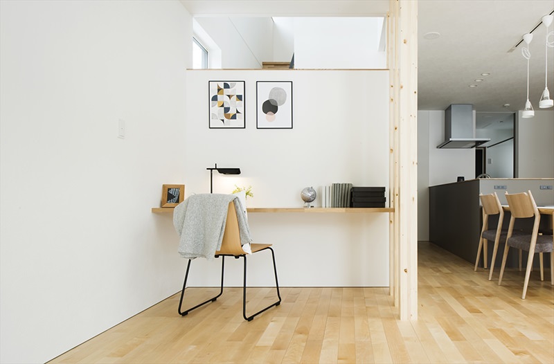 1階フリースペースの収納スペースは、作業用のデスクに。